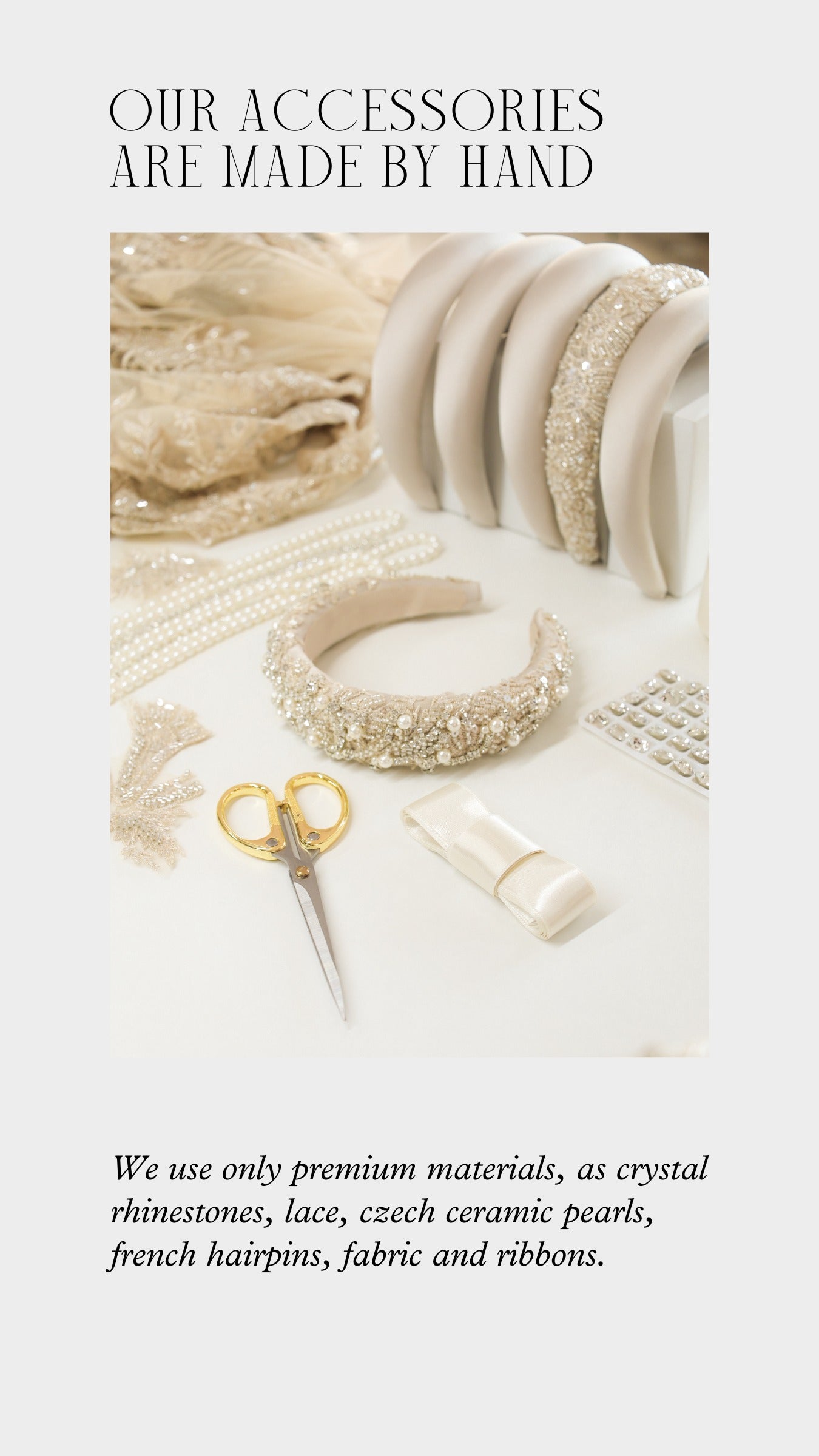 The bow is handmade from double-sided satin ribbon, decorated with rhinestones made of crystal glass and Czech ceramic pearls, attached to a steel French hairpin.